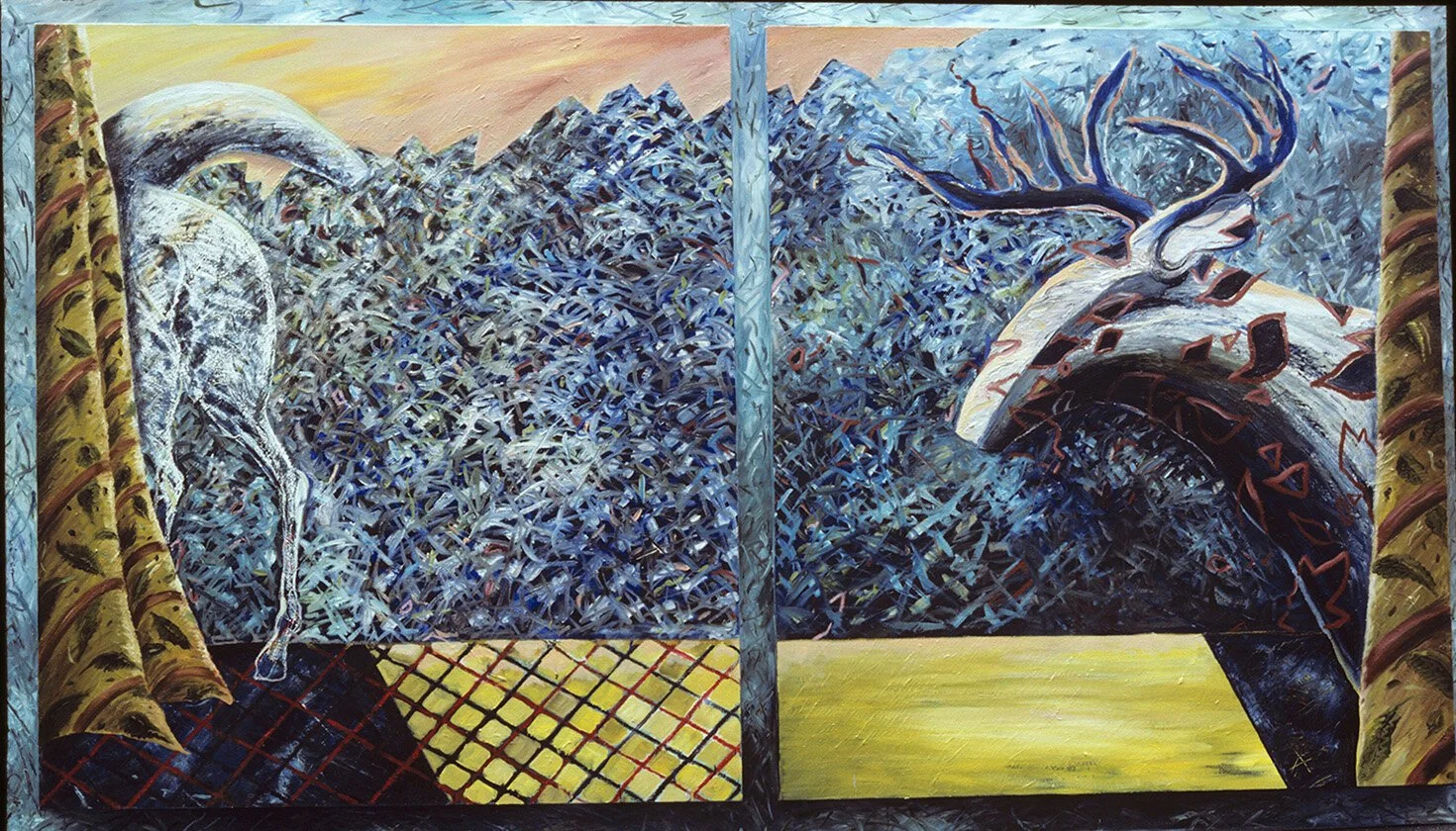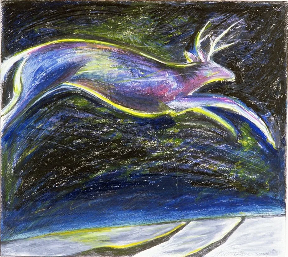 Deer from another Place: 36 x 40 inches oil stick on paper 1984